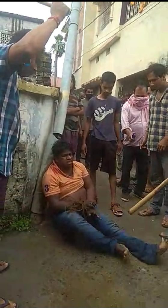 युवती के गले से चेन छिनकर भागने के क्रम में लोगो ने बाइक सवार एक लूटैरे को दबोच लिया, जबकि दूसरा फरार हो गया। पकड़े गए लूटेरे को उग्र भीड़ ने पोल में बांधकर जमकर पिटाई कर दी। घटना शनिवार की मिठनपुरा थाना क्षेत्र के रामबाग इलाके में हुई। जानकारी अनुसार अपाची बाइक पर सवार दो लूटेरो ने एक युवती के गले से चेन छिनकर भाग रहे थे। इस क्रम में लोगो ने पीछा कर एक लूटेरे को दबोच लिया और उसकी जमकर धुनाई कर दी। सूचना पर पहुंची पुलिस ने भीड़ से छ़ुड़ाकर अपने साथ ले गई है। डीएसपी रामनरेश पासवान ने बतायाकि छिनतई की सूचना मिली थी। फिलहाल पकड़े गए लूटेरे पुलिस के कब्जे में है और उससे पूछताछ की जा रही है। छिनतई के क्रम में घायल युवती निजी अस्पताल में इलाजरत है।