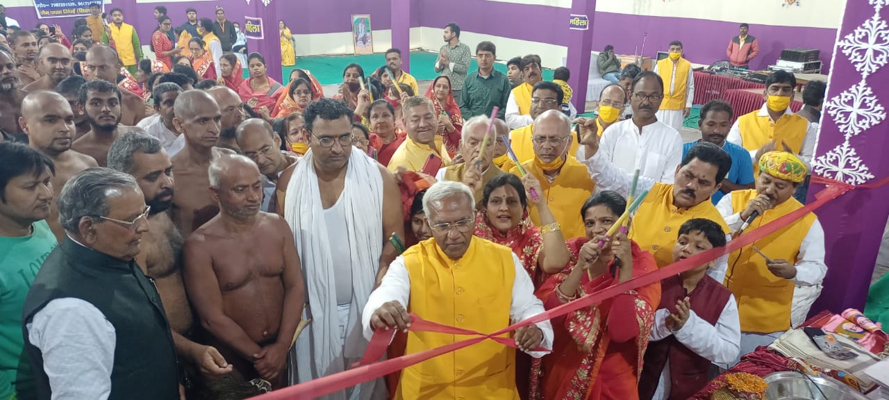 सरस्वती भवन के पंडाल का उद्घाटन समाज के अग्रणी सुरेश जैन झाझंरी ने किया