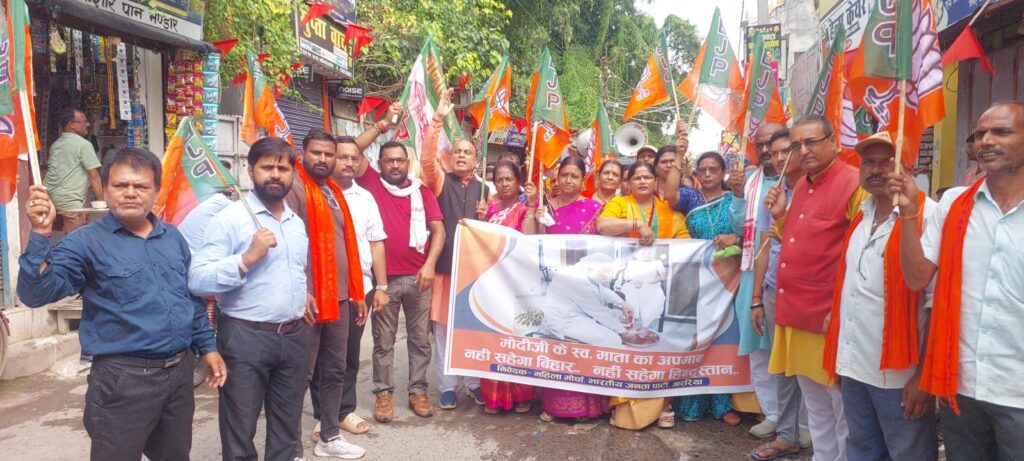 विधायक विद्यासागर केशरी ने कहा कि दरभंगा की सभा में कांग्रेस नेता राहुल गांधी और राजद नेता तेजस्वी यादव के मंच से प्रधानमंत्री नरेंद्र मोदी की दिवंगत मां के लिए अपमानजनक शब्द कहे गए, जो बेहद निंदनीय है। उन्होंने कहा कि यह केवल प्रधानमंत्री की मां का नहीं, बल्कि पूरे देश की माताओं का अपमान है। इसी का प्रतिकार करने के लिए एनडीए कार्यकर्ता सड़क पर उतरे हैं।