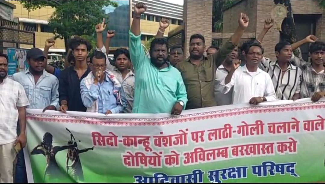 प्रदर्शन के दौरान सरकार के खिलाफ जोरदार नारेबाजी की गई और दोषी अधिकारियों की बर्खास्तगी, पीड़ित परिवारों को मुआवजा, और आदिवासी नेताओं को सुरक्षा देने की मांग की गई।