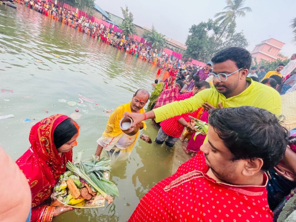 अस्ताचलगामी सूर्य अर्घ्य छठ पूजा सुरक्षा व्यवस्था टना छठ घाट बिहार छठ पूजा 2025