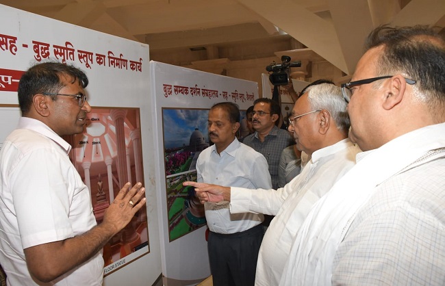 मुख्यमंत्री ने योजना के मुख्य अवयवों- बुद्ध स्तूप की आकृति (पत्थर की संरचना), संग्रहालय ब्लॉक, पुस्तकालय एवं ध्यान केन्द्र, आगंतुक केंद्र, अतिथि गृह, प्रदर्श और परिदर्शक केंद्र के संबंध में विस्तृत जानकारी ली और स्थल निरीक्षण कर निर्माण कार्यों का बारिकी से अवलोकन किया। मुख्यमंत्री ने परिसर में बने तालाब और लगाए गए पेड़-पौधों का जायजा लिया। उन्होंने मेकिंग ऑफ बुद्ध सम्यक दर्शन संग्रहालय-सह-स्मृति स्तूप की गैलरी का भी निरीक्षण किया।