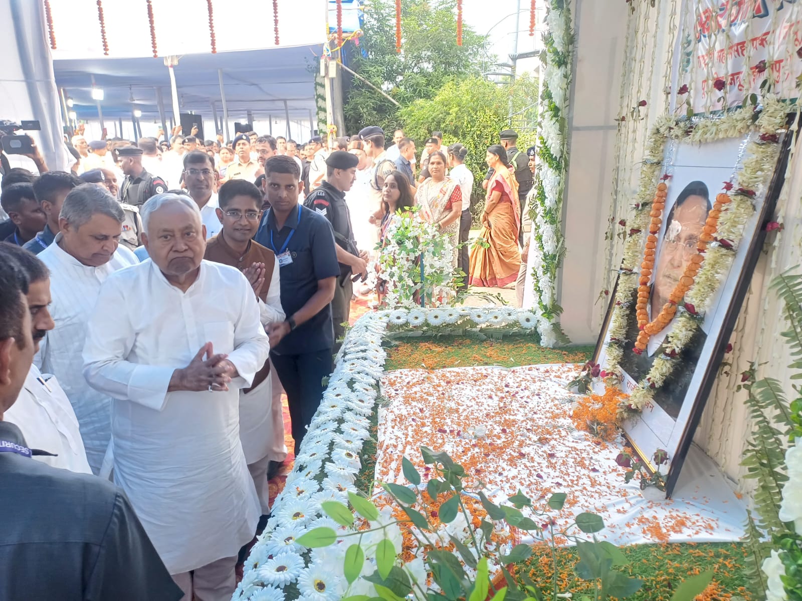 Nalanda News:-  नालंदा जिले के एकंगरसराय में एक भावुक क्षण उस समय देखने को मिला, जब मुख्यमंत्री नीतीश कुमार अपने पुराने मित्र और पूर्व विधायक स्व. राजीव रंजन की पहली पुण्यतिथि पर उन्हें श्रद्धांजलि देने पहुंचे। कोल्ड स्टोरेज परिसर में आयोजित श्रद्धांजलि सभा में जनप्रतिनिधियों, पार्टी कार्यकर्ताओं और समर्थकों की बड़ी संख्या उमड़ी थी।