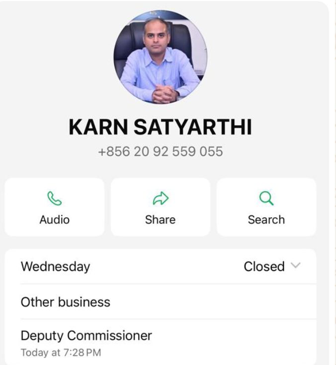 Jamshedpur News:- पूर्वी सिंहभूम जिला प्रशासन ने बुधवार देर रात नागरिकों क सतर्क रहने की अपील की है। प्रशासन को सूचना मिली है कि अज्ञात व्यक्ति की ओर से उपायुक्त कर्ण सत्यार्थी के नाम और उनकी प्रोफाइल फोटो का इस्तेमाल कर व्हाट्सएप पर लोगों से पैसे मांगे जा रहे हैं।