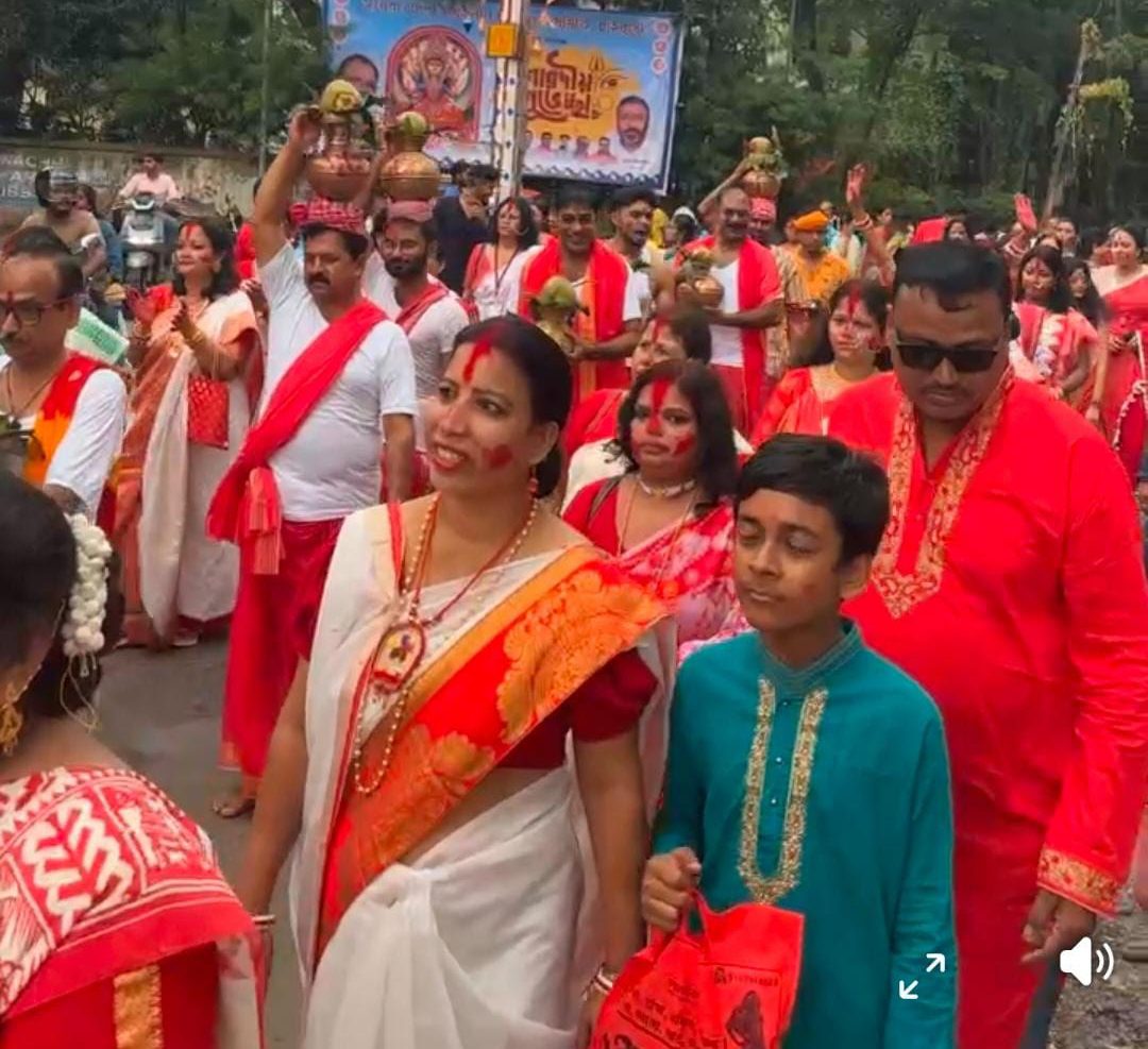 विसर्जन से पहले बंगाली परंपरा के अनुसार महिलाओं ने “सिंदूर खेला” का आयोजन किया। सुहागिन महिलाएं लाल-सफेद पारंपरिक साड़ी पहनकर मां दुर्गा को सिंदूर अर्पित करतीं और एक-दूसरे को लगातीं नजर आईं। इस दौरान उन्होंने परिवार की सुख-समृद्धि और लंबे दांपत्य जीवन की मंगलकामना की। पूरा माहौल उत्साह और आस्था से सराबोर हो गया।