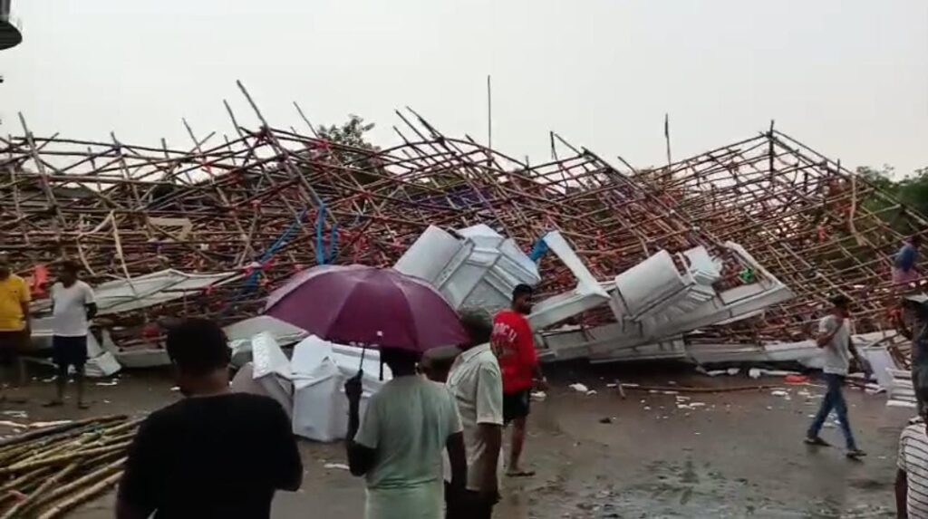 Home»Headline»दुर्गोत्सव की तैयारी में बारिश ने डाला खलल, कई पूजा पंडाल धराशायी