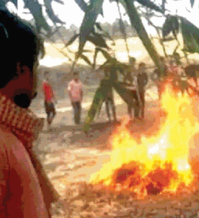 जानकारी अनुसार थाना क्षेत्र के ज्ञानचक गांव निवासी विक्षिप्त व्यक्ति एक बुजुर्ग डिग्री चौधरी को बगीचे में पीट-पीटकर अधमरा कर दिया और इसके बाद पत्ता इकट्ठा कर उसे जला दिया। बुजुर्ग की हत्या से ग्रामीण उग्र हो उठे और विक्षिप्त की तलाश शुरू कर दी। इस बीच ग्रामीणों को पता चला कि हत्या के बाद विक्षिप्त एक ईंट भट्ठे के पास जाकर अन्य लोगों के साथ मारपीट कर रहा है। इस पर ग्रामीणों ने विक्षिप्त को पकड़ कर मारपीट कर पहले उसे अधमरा किया और उसी अंदाज में जलाकर मार डाला।