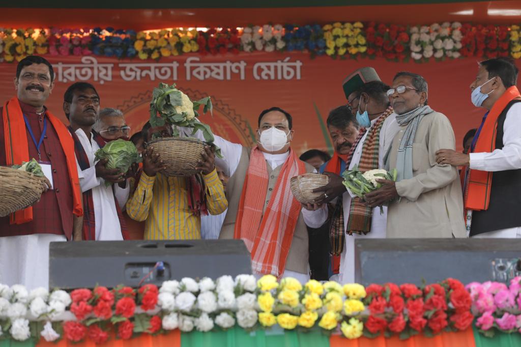 नड्‌डा ने कोलकाता में निर्मित ईस्ट वेस्ट मेट्रो परियोजना को मोदी जी की देन  बताया। साथ ही कृषकों के लिए किए जा रहे कार्य का भी उल्लेख किया। इसके पूर्व जेपी नड्डा ने राज्य में एक मुट्ठी चावल संग्रह अभियान की औपचारिक शुरुआत की। इस अभियान के तहत भाजपा के कार्यकर्ता 73 लाख किसानों के घर जाकर एक एक मुट्ठी चावल संग्रह करेंगे। 24 जनवरी तक चलने वाले अभियान में 40 हजार ग्राम सभाओं तक पहुंच बनाएंगे।