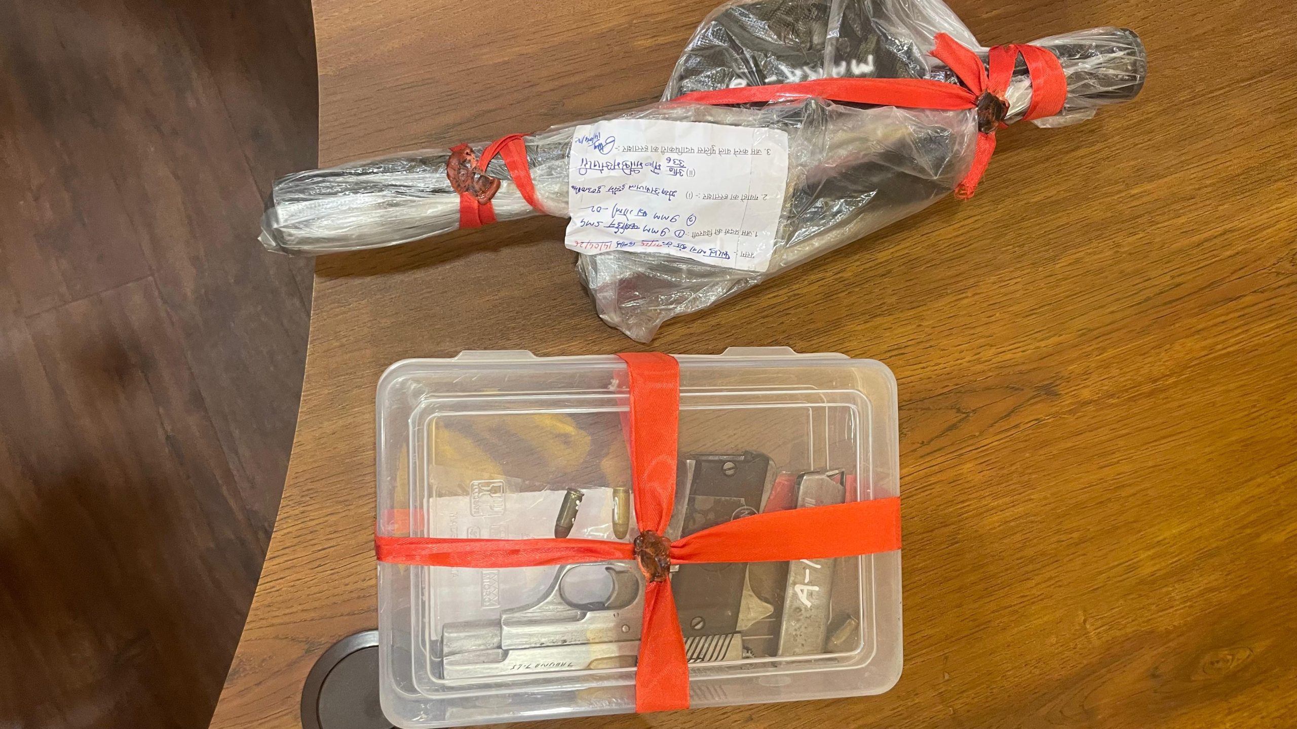 जब पुलिस ने दोनों की तलाशी ली तो कारण करमाली के पास से 7.65 एमएम का लोडेड देसी पिस्तौल बरामद हुआ, जिसमें तीन गोलियां मौजूद थीं। वहीं बाइक के करियर में टंगे एक बैग से 9 एमएम का लोडेड देसी कार्बाइन मिला, जिसमें दो गोलियां थीं।