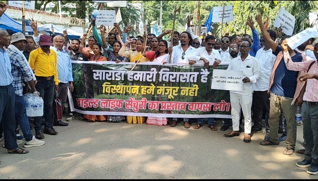 Chaibasa News:- पश्चिमी सिंहभूम जिला स्थित सारंडा को वाइल्ड लाइफ सेंचुरी घोषित किए जाने के प्रस्ताव के खिलाफ मंगलवार को जिले में विशाल महा जन आक्रोश रैली निकाली गई।