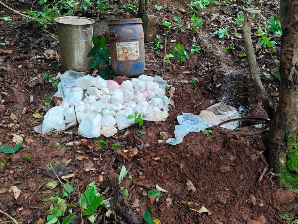 अभियान के दौरान मासीबेरा हिल क्षेत्र के पास जंगलों में छिपाकर रखे गए विस्फोटक सामग्रियों का भंडार मिला। बरामद सामग्री में शामिल हैं: