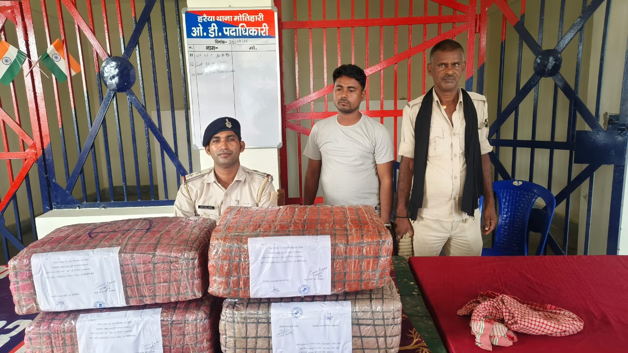 East Champaran News:- जिले के हरैया थाना पुलिस ने गुप्त सूचना के आधार पर बड़ी सफलता हासिल की है। पुलिस ने रविवार को छापेमारी कर भारी मात्रा में मादक पदार्थ गांजा बरामद किया है। इस दौरान पुलिस ने एक तस्कर को भी गिरफ्तार किया। पकड़े गए तस्कर की पहचान भलुवाहा गांव निवासी सोनेलाल यादव के पुत्र पप्पू कुमार के रूप में की गई है।