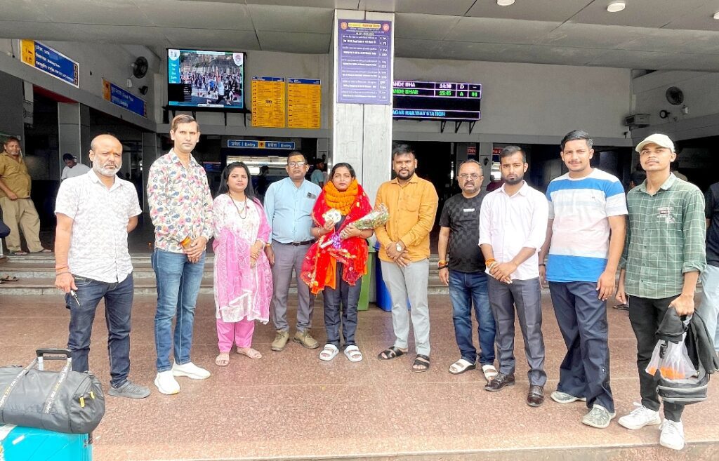 Jamshedpur News:- मानगो निवासी स्नेहा कुमारी ने थाईलैंड में आयोजित अंतरराष्ट्रीय स्ट्रेंथलिफ्टिंग एवं इनक्लाइन बेंच प्रेस चैंपियनशिप 2025 में दो स्वर्ण पदक जीतकर अपने देश एवं झारखंड और लौहनगरी जमशेदपुर का नाम विश्व पटल पर रोशन किया है। सोमवार को स्नेहा के टाटानगर रेलवे स्टेशन आगमन पर भारतीय जनता युवा मोर्चा जमशेदपुर महानगर के ज़िला अध्यक्ष एवं पूर्व छात्रसंघ अध्यक्ष नीतीश कुशवाहा के नेतृत्व में भव्य स्वागत किया गया। इस दौरान पूरा स्टेशन परिसर देशभक्ति और नारी सम्मान के नारों से गुंजायमान रहा। स्वागत के दौरान स्वर्ण पदक विजेता स्नेहा कुमारी को पुष्पगुच्छ, अंगवस्त्र भेंटकर सम्मानित किया गया। साथ ही बधाई और उज्ज्वल भविष्य की शुभकामनाएं दी गयी। इस अवसर पर बड़ी संख्या में भाजपा कार्यकर्ता, स्थानीय युवा, खेलप्रेमी, सामाजिक संगठनों के प्रतिनिधि एवं मीडिया कर्मी मौजूद रहे।