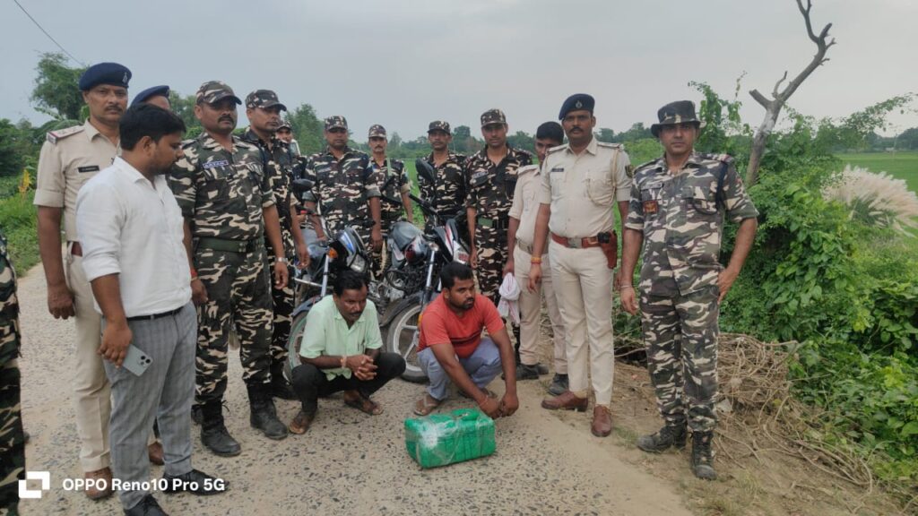 East Champaran News;- बिहार के पूर्वी चंपारण जिले में पुलिस और एसएसबी ने संयुक्त कार्रवाई कर गांजा तस्करी के एक मामले का भंडाफोड़ किया है। इस दौरान छह किलोग्राम प्रतिबंधित गांजा के साथ दो तस्करों को गिरफ्तार किया गया है। पकड़े गए तस्कर मोटरसाइकिल पर गांजा लेकर जा रहे थे। जानकारी के अनुसार, यह कार्रवाई जीतना थाना क्षेत्र के बनकटवा पेट्रोल पंप के पास की गई। जीतना थानाध्यक्ष सुधीर कुमार ने बताया कि गिरफ्तार तस्करों की पहचान भवानीपुर गांव निवासी पवन कुमार और अगरवा गांव निवासी अशर्फी राय के रूप में हुई है। दोनों से पूछताछ कर तस्करी नेटवर्क और इससे जुड़े अन्य लोगों की जानकारी जुटाई जा रही है।