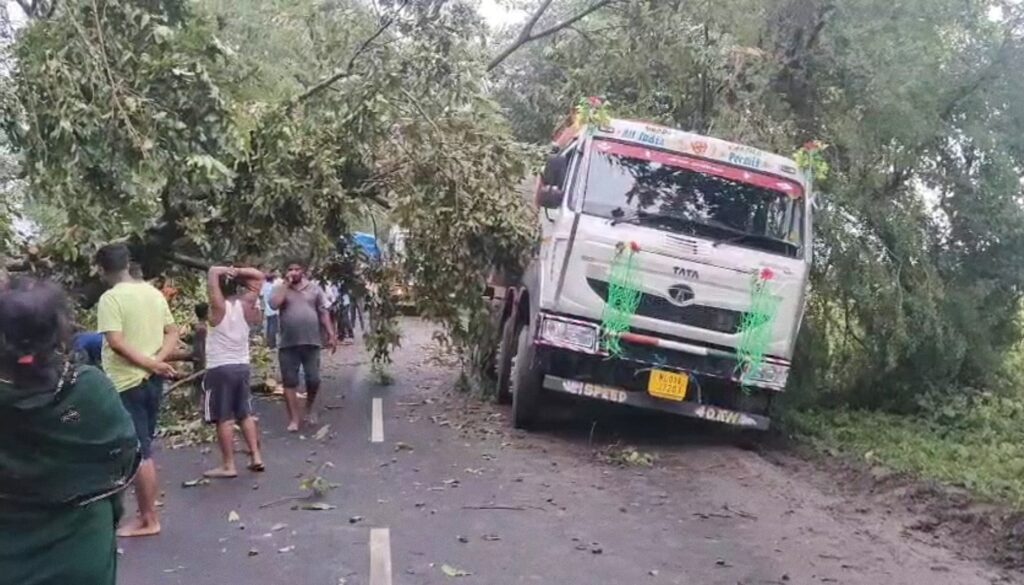 गुजरात के पोरबन्दर से आसाम के सिलचर तक जाने वाली एनएच 27 फोरलेन सड़क पर ढोलबज्जा के निकट पेड़ बीच सड़क पर गिर गया,जिससे यातायात बाधित हो गया है।