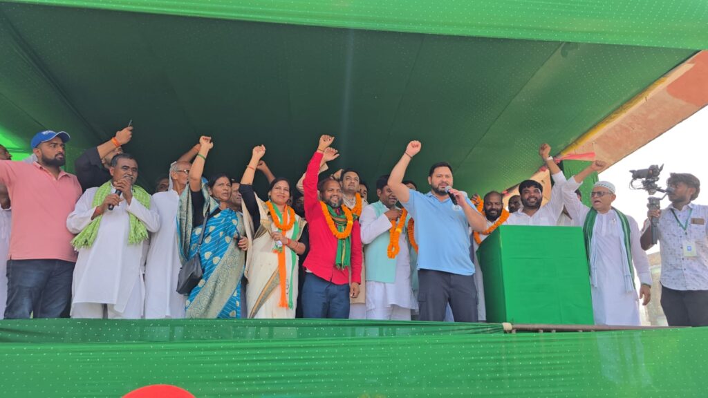 Saharsa News:- बिहार विधानसभा चुनाव को लेकर सियासी सरगर्मी तेज हो गई है। इसी कड़ी में नेता प्रतिपक्ष तेजस्वी यादव ने शुक्रवार को सहरसा जिले के सिमरी बख्तियारपुर विधानसभा क्षेत्र के सलखुआ स्थित महंथ मिट्ठू दास उच्च विद्यालय मैदान में एक विशाल जनसभा को संबोधित किया। यह सभा महागठबंधन प्रत्याशी युसूफ सलाउद्दीन के समर्थन में आयोजित की गई थी।