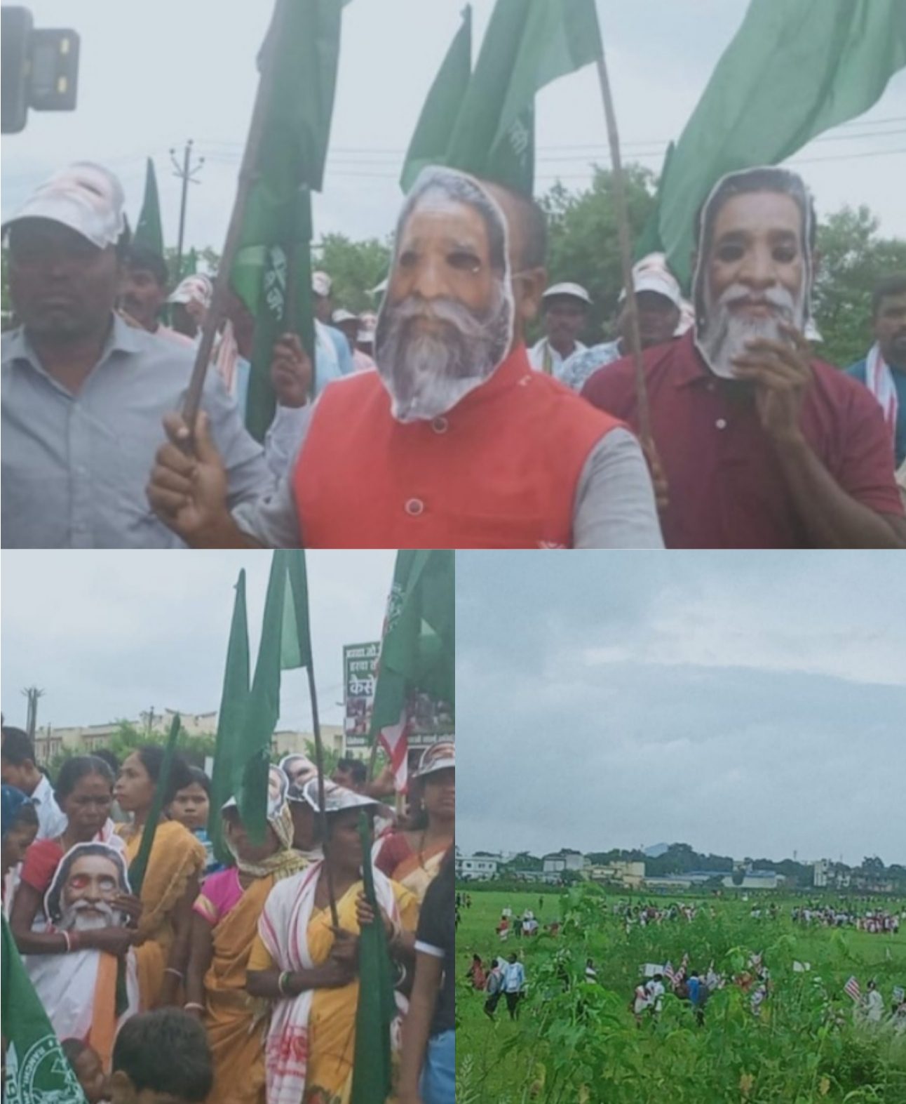 आंदोलनकारी किसान, आदिवासी महिला- पुरुष दिशोम गुरु शिबू सोरेन का मुखौटा लगाकर खेतों की पगडंडी होते हुए रिम्स-2 की जमीन पर पहुंच गए। वहां पहुंचे लोग खेतों में हल चलाने और रोपा रोपने लगे। इस आंदोलन में शामिल होने के लिए लातेहार, लोहरदगा, बिजुपाड़ा, हातमा, बेड़ों सहित कई इलाकों से सैंकड़ों ग्रामीण खेतिहर जमीन बचाने के लिए पहुंचे थे।