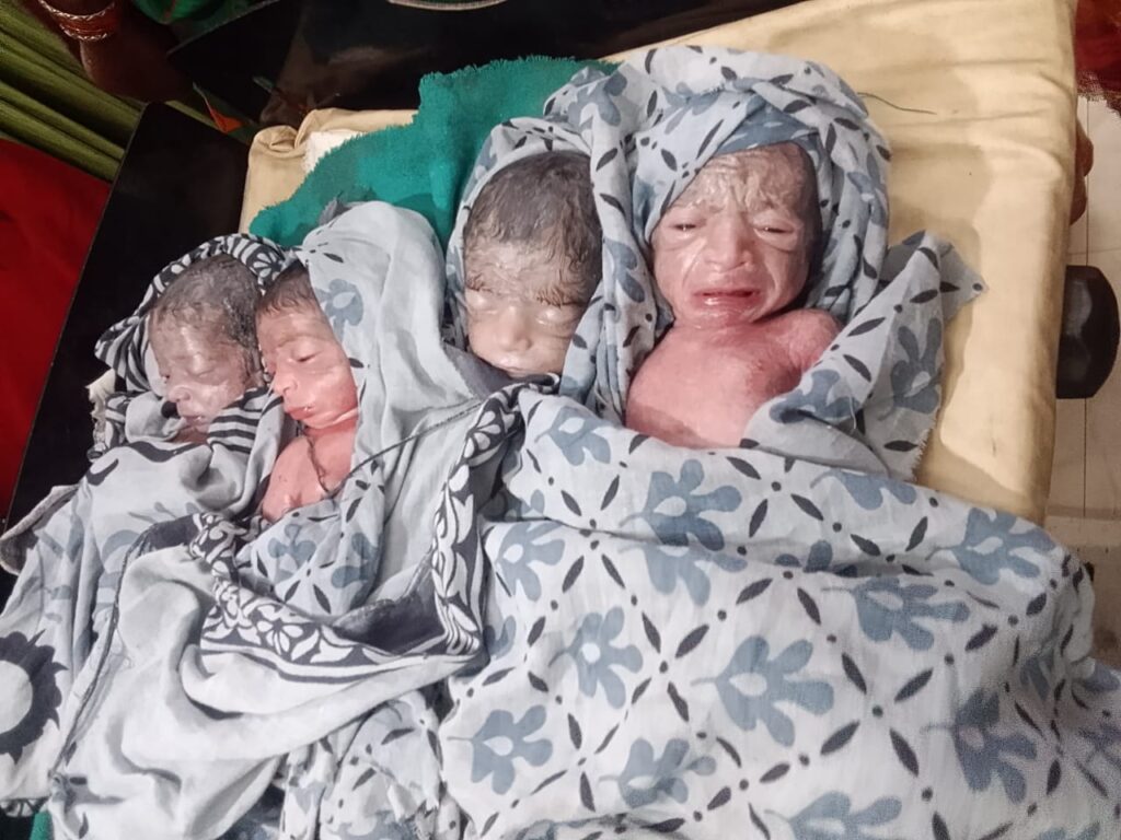 Purnia News:- पूर्णिया के बायसी प्राथमिक स्वास्थ्य केंद्र (PHC) में बुधवार को एक चौंकाने वाली घटना सामने आई। यहां एक महिला ने एक साथ चार बच्चियों को जन्म दिया है। इस घटना की जानकारी फैलते ही पूरे इलाके में चर्चा का विषय बन गया है।