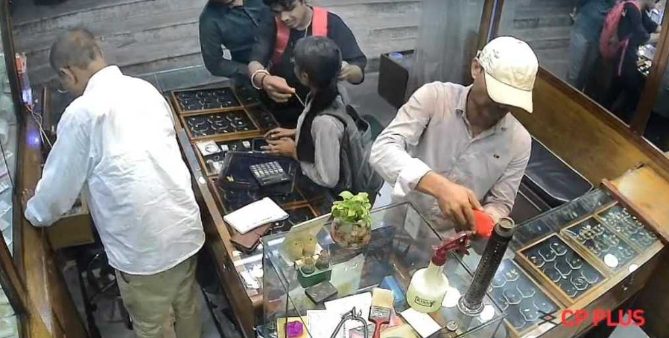 वारदात दुकान में लगे सीसीटीवी कैमरे में पूरी तरह कैद हो गई है। फुटेज में आरोपी को चेन चोरी करते और दुकान से निकलते हुए साफ़ देखा जा सकता है।