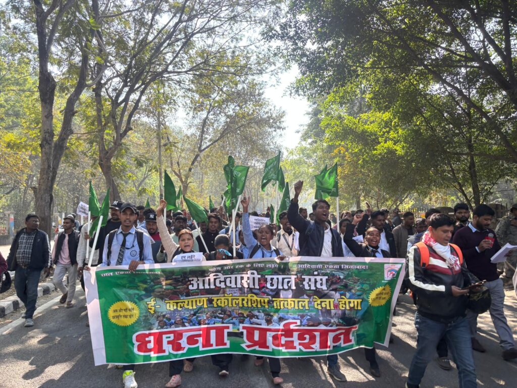 झारखंड में ई–कल्याण छात्रवृत्ति के भुगतान में लगातार तीन वर्षों से हो रही देरी के खिलाफ शनिवार को छात्रों का गुस्सा सड़क पर फूट पड़ा। आदिवासी छात्र संघ, झारखंड के नेतृत्व में हजारों छात्रों ने रांची कॉलेज मुख्य द्वार से मोरहाबादी स्थित कल्याण कॉम्प्लेक्स तक एक विशाल विरोध मार्च निकाला। प्रदर्शनकारियों ने सरकार को साफ चेतावनी दी कि यदि 48 घंटे के भीतर लंबित छात्रवृत्ति जारी करने पर कोई ठोस कदम नहीं उठाया गया, तो आंदोलन को और तेज किया जाएगा।