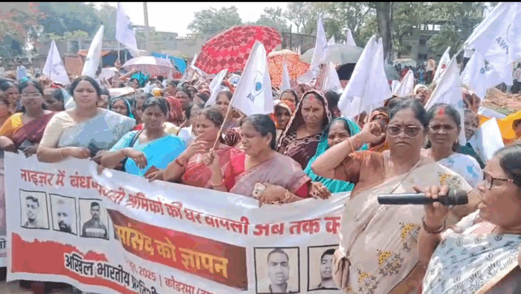 Koderma News:- पश्चिमी अफ्रीकी देश नाइजर में अपहृत बगोदर के पांच प्रवासी मजदूरों की रिहाई की मांग को लेकर रविवार को केंद्रीय मंत्री एवं कोडरमा सांसद अन्नपूर्णा देवी के आवास का घेराव किया गया। इस विरोध प्रदर्शन का आयोजन भाकपा माले की महिला इकाई – अखिल भारतीय प्रगतिशील महिला एसोसिएशन के बैनर तले किया गया।